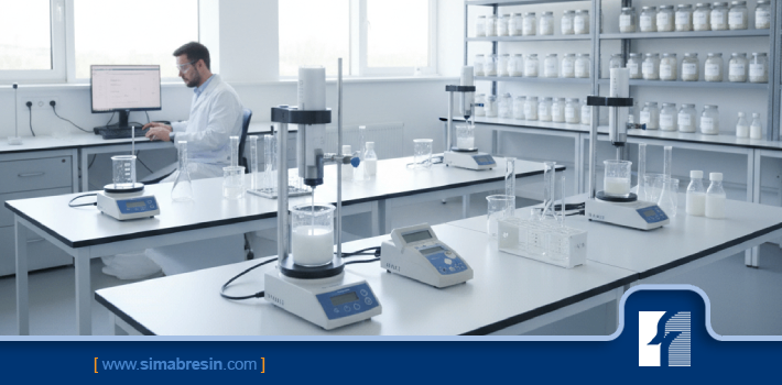 برای اطمینان از کیفیت رزین های صنعتی (به ویژه رزین های اکریلیک پایه آب)، مجموعه ای از شاخص های کلیدی کیفی به طور مستمر اندازه گیری و ارزیابی می شوند. از جمله مهم ترین این شاخص ها می توان به توزیع اندازه ذرات، پایداری ویسکوزیته، سطح pH و یکنواختی پراکندگی پلیمر اشاره کرد. اندازه گیری توزیع اندازه ذرات نقش مهمی در رزین های امولسیونی پایه آب دارد؛ چرا که اندازه ذرات باید در محدوده معینی باشد تا خواص محصول (شفافیت، براقیت و استحکام فیلم پوششی) یکنواخت باقی بماند. برای این منظور معمولاً از تکنیک های آنالیزی مانند پراش لیزر یا پخش نور دینامیک استفاده می شود که داده های دقیقی از یکنواختی ذرات و احتمال کلوخه شدن آن ها به دست می دهد. همچنین ویسکوزیته و رفتار رئولوژیکی رزین در نرخ های برشی مختلف اندازه گیری می شود تا مشخص گردد رزین تحت شرایط فرآیندی گوناگون (مثلاً هنگام پمپ شدن، مخلوط شدن یا اعمال شدن روی سطح) چه رفتاری از خود نشان می دهد. پایداری ویسکوزیته در بازه زمانی نیز از این طریق پایش می شود تا اطمینان حاصل گردد که رزین در حین نگهداری دچار ژل شدن یا افت ویسکوزیته نخواهد شد.